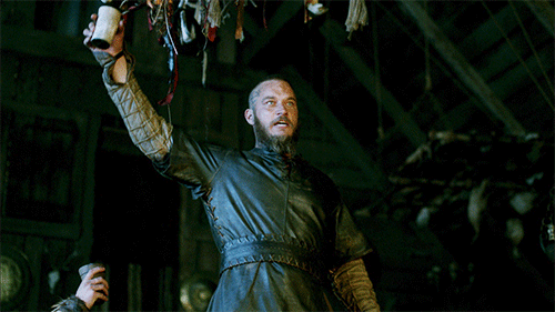 (Escogí este gif porque ÉPICO.) Finalizamos con el regreso del personaje favorito de todos los niños. Ragnar vuelve de su autodestierro, después de su crisis provocada por la droga que Yidu le proveía. Lo vemos con la cabeza completamente afeitada, tal como la de los esclavos, pero sabemos que no lo es por su frondosa barba que estuvo cultivando. Si bien esto es correcto, durante la serie vemos esclavos que si se dejan la barba, o incluso, en el caso de las mujeres, que también les corresponde cortar su cabello, con el pelo largo… cosa que no correspondería según la historia real.